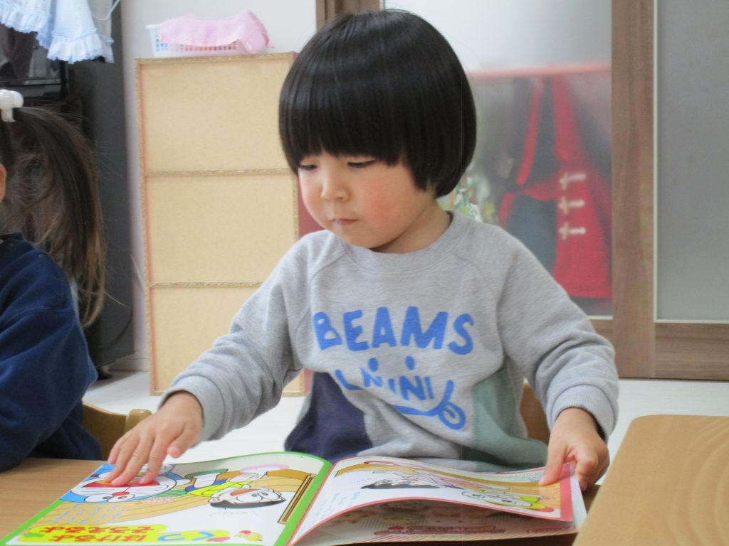 絵本を読んでいる写真は、給食の後の様子です!!