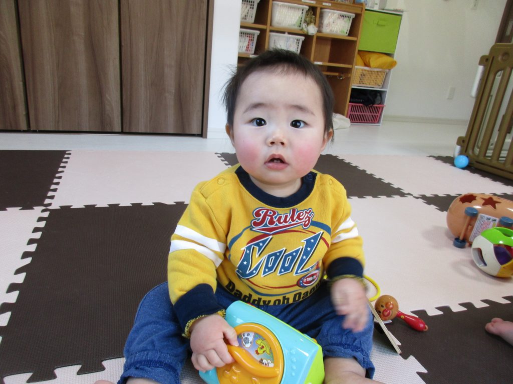 0歳児さんは新しく仲間入りした音の出る玩具も出して遊びました!!