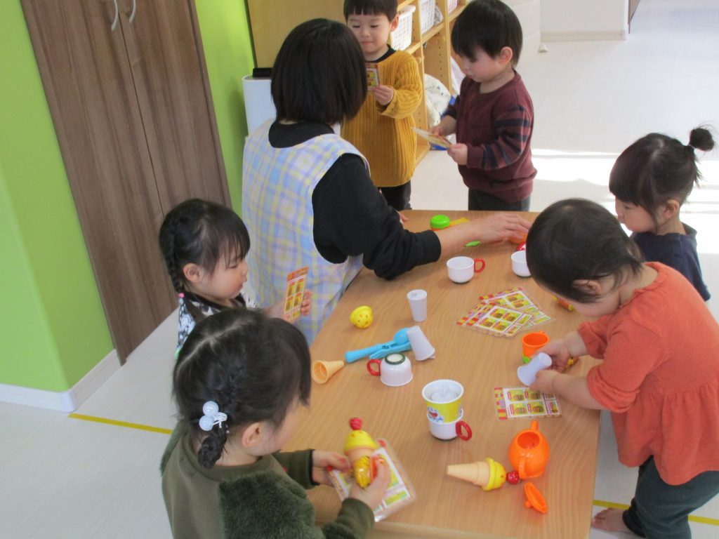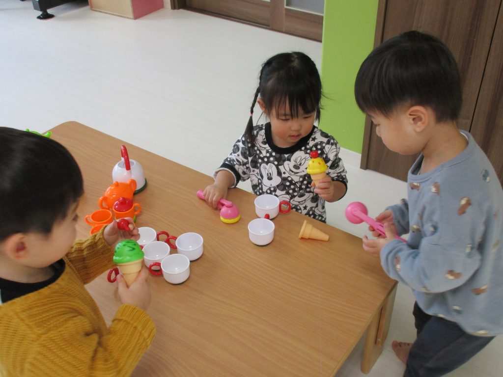 アイスクリーム屋さんの玩具でお店やさんごっこをして遊びました(^_^)