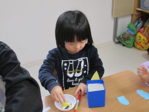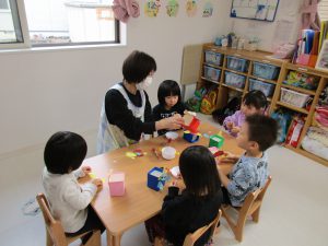 いつも製作は順番に行っていますが、今日はみんなで一斉にしてみました(^_^)