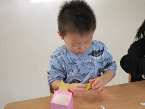 みんなしっかりお話しを聞いて丁寧に作業し、可愛らしい「豆入れ」が