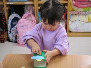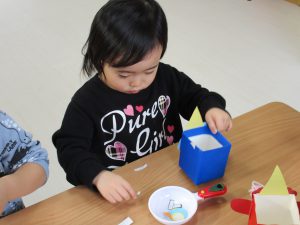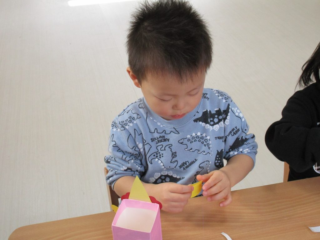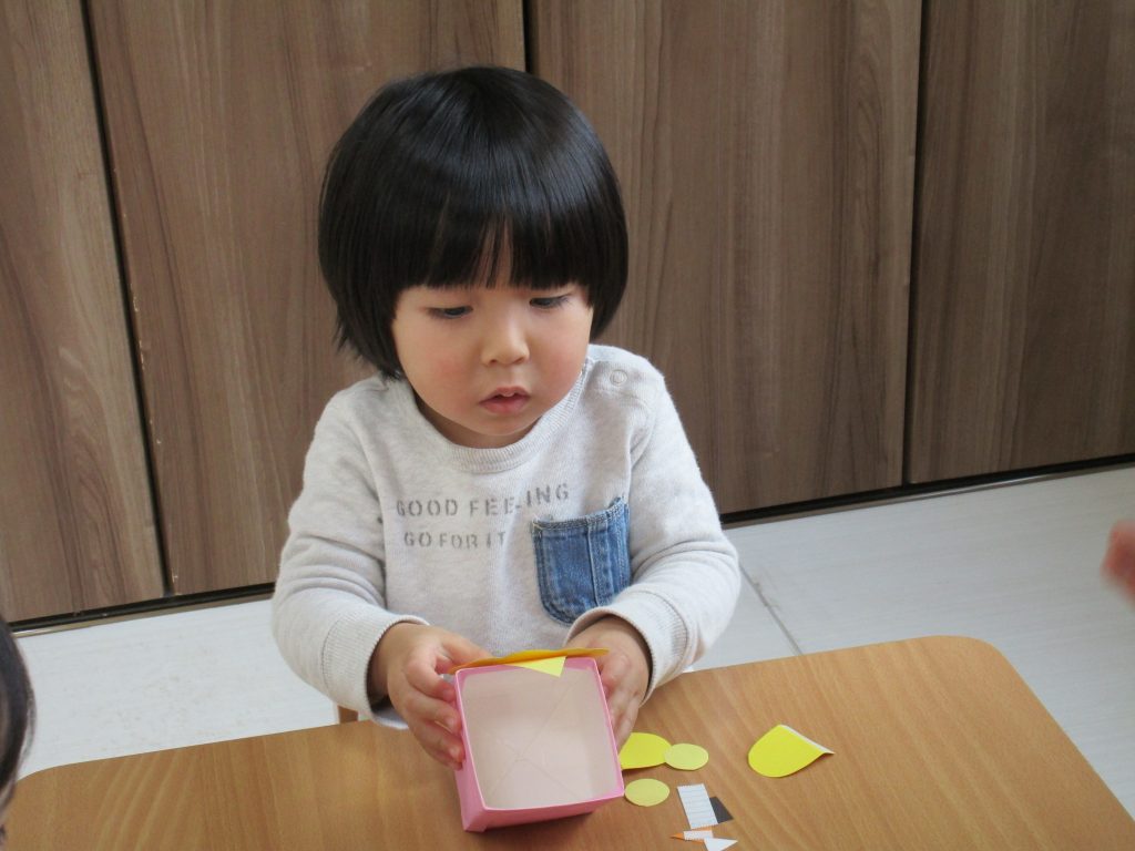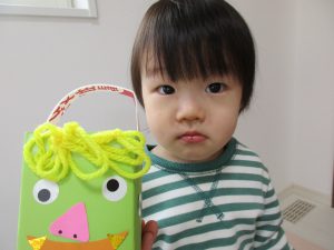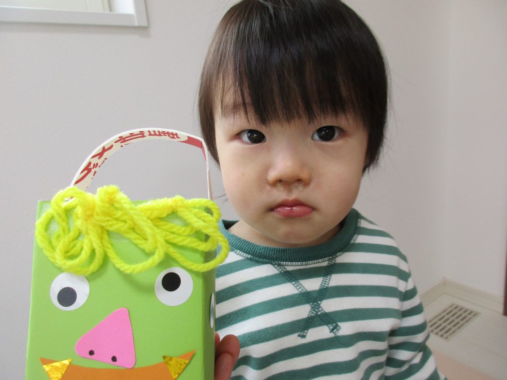2歳児さんは「豆入れ」の製作をしました!!