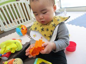 0歳児さんは玩具遊びをしました!!