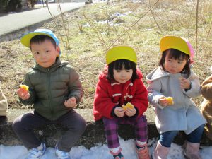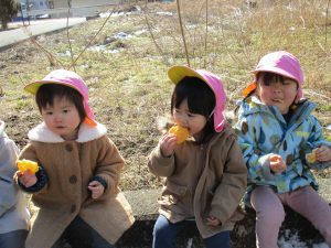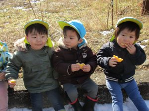 お菓子と水筒を持って行き、お外でおやつを食べてきました(^o^)