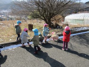 まだ雪が残っていて、意外に柔らかい雪だったので、先生が小さな