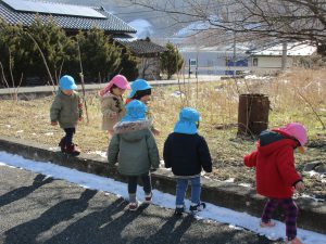 1・2歳児さんは電車の見える空き地までお散歩に出掛けてきました!!