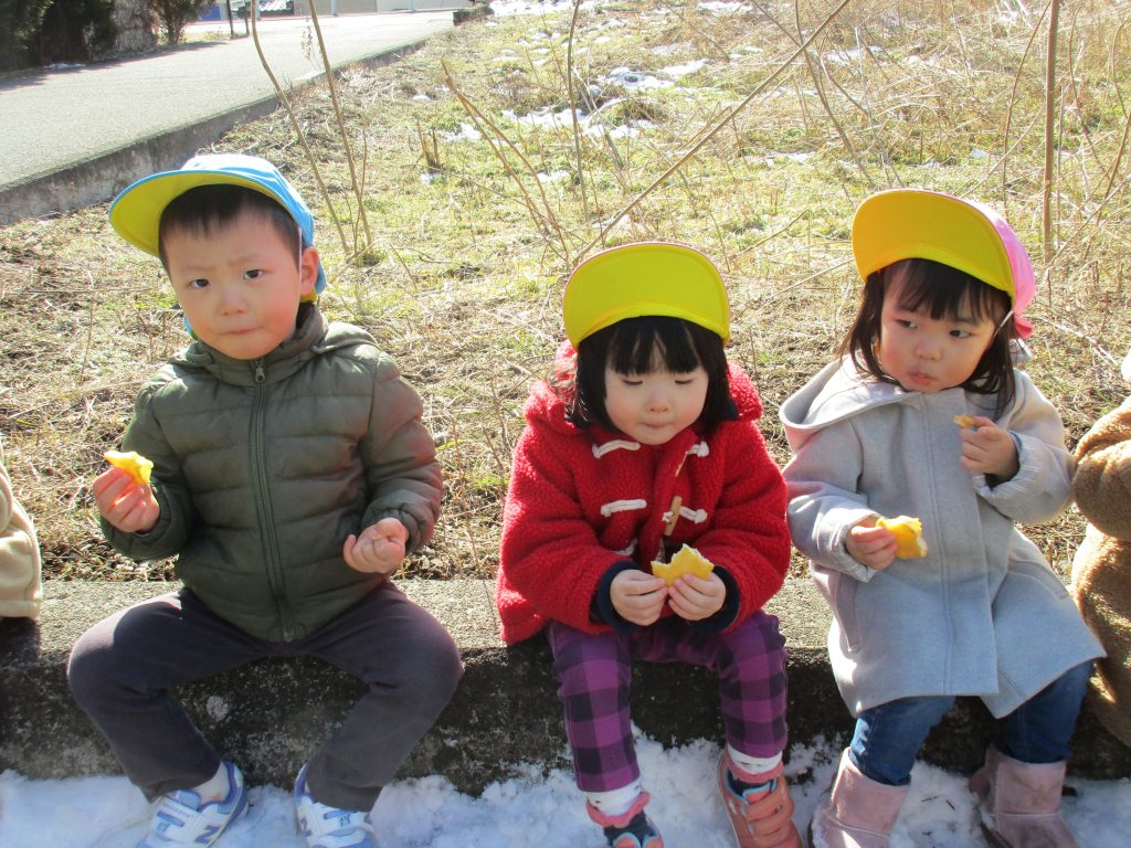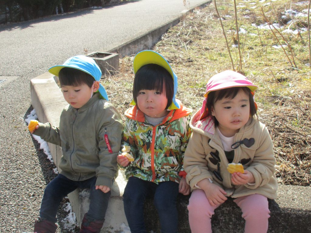 お菓子と水筒を持って行き、お外でおやつを食べてきました(^o^)
