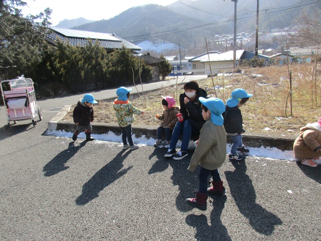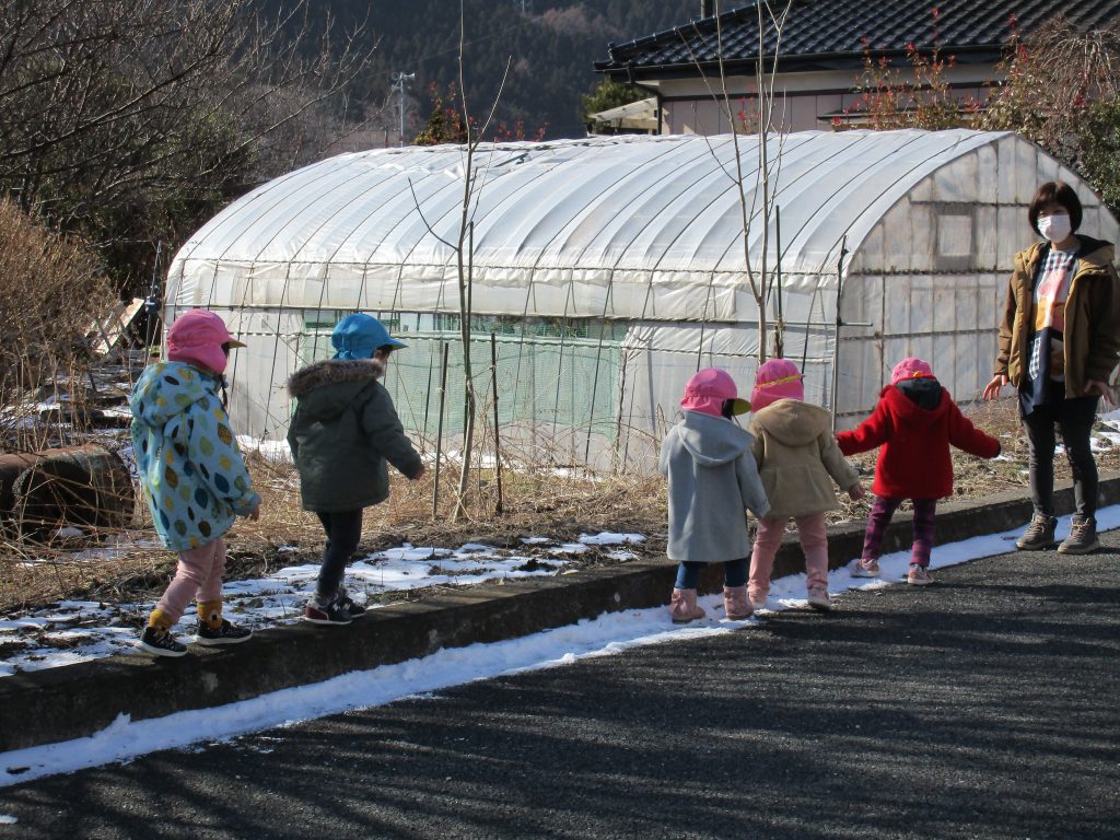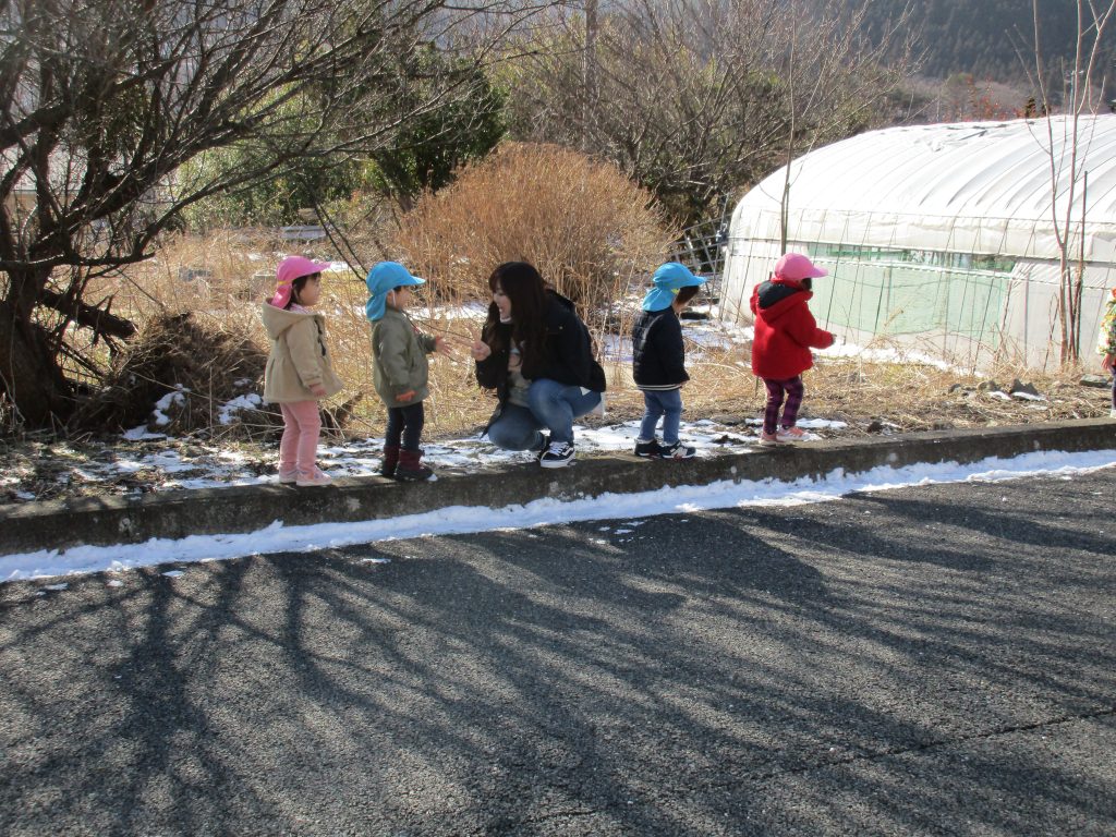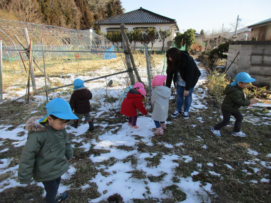 まだ雪が残っていて、意外に柔らかい雪だったので、先生が小さな
