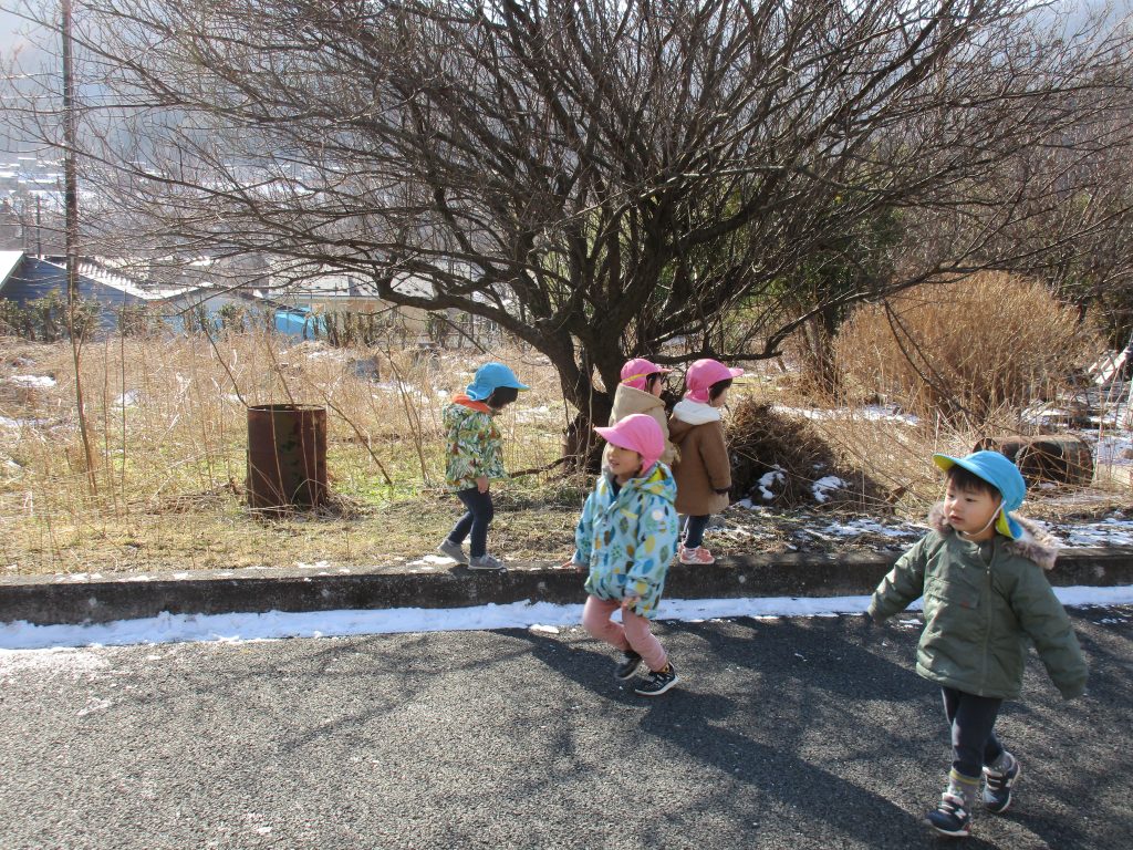 1・2歳児さんは電車の見える空き地までお散歩に出掛けてきました!!