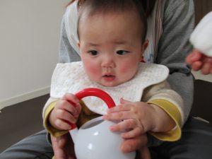 カップで乾杯して飲む真似をしたり楽しんでいました(^o^)