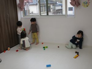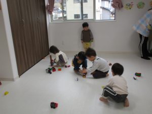 ブロックを組み立てたり、車を走らせたり、お友達と関わりながら