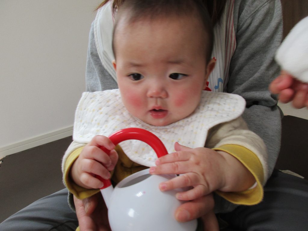 0歳児さんはままごと遊びをしました!!