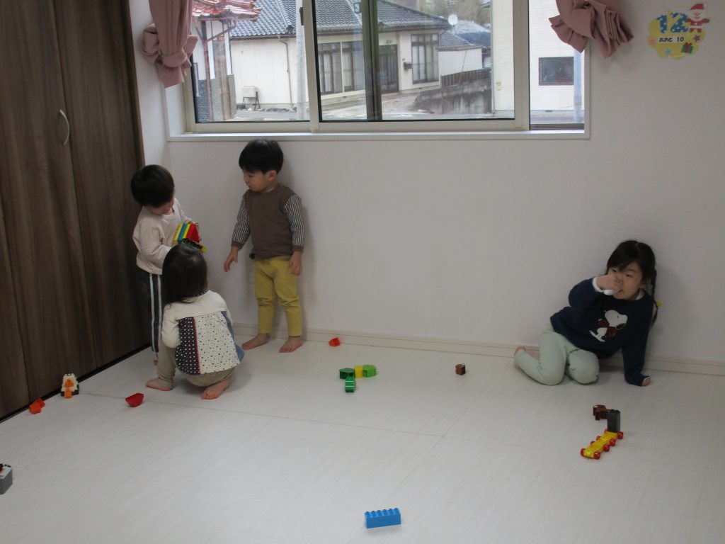 0歳児さんはままごと遊び、1・2歳児さんはアンパンマンブロックや