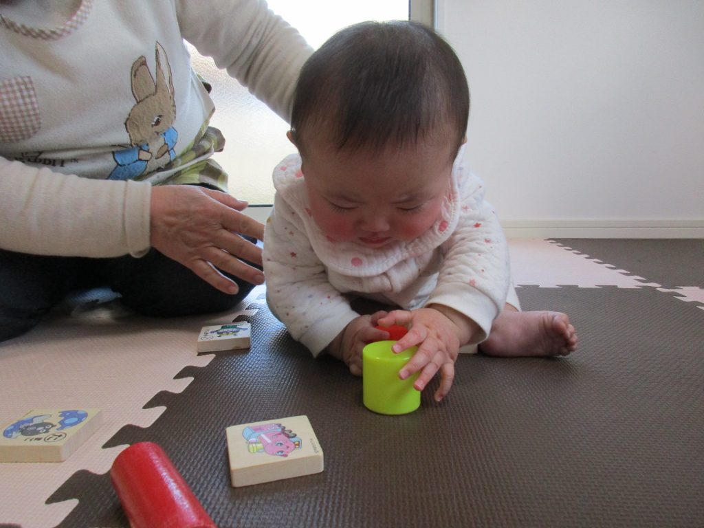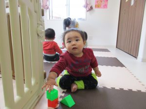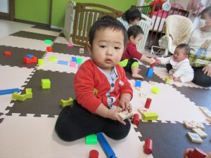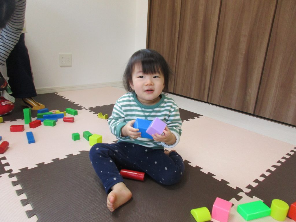 小さいお友達は重ねた積木を崩すことを楽しんでいました(*^_^*)