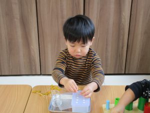 棚から自分で好きな教具を持ってきて集中して取り組んでいました(^_^)