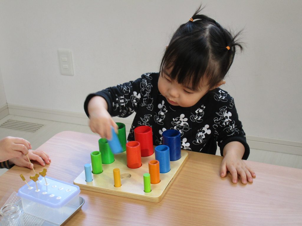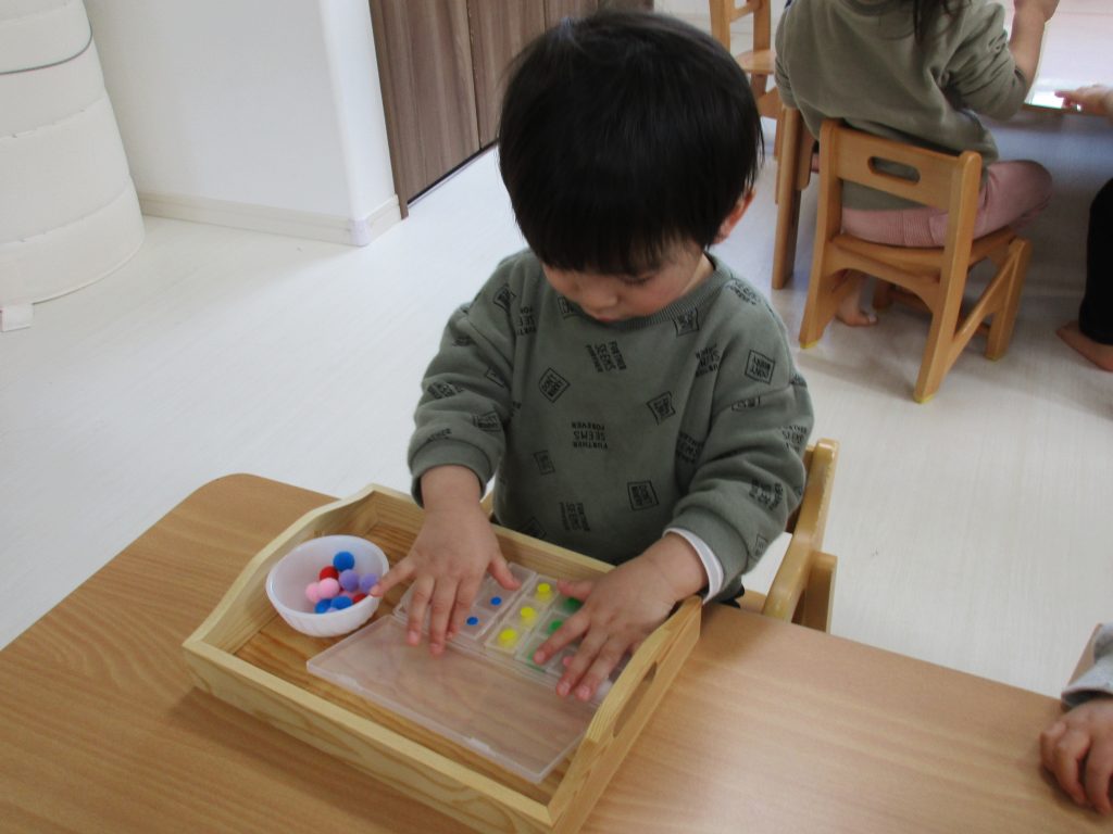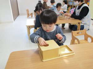 1・2歳児さんはモンテッソーリ教具でお仕事をしました!!
