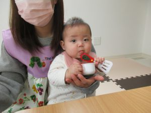 0歳児さんはままごと遊びをしました!!