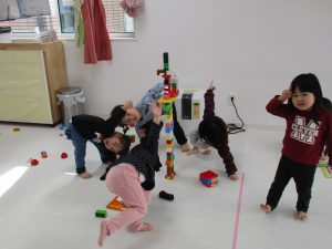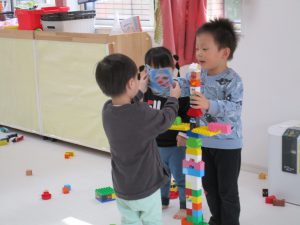 ブロックを高く組み立てて、ロボットを作っていたお友達もいました(^_^)