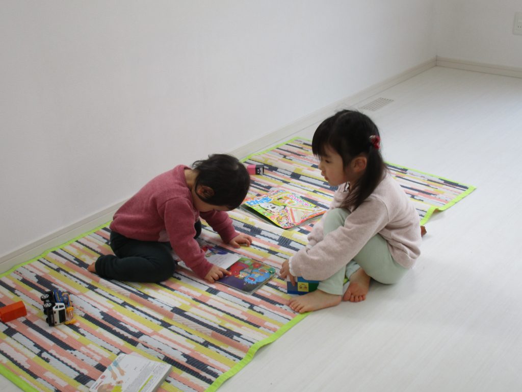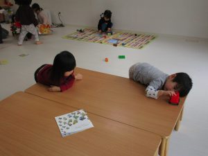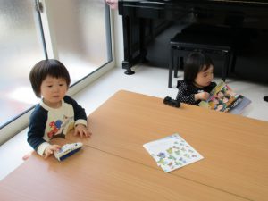 1・2歳児さんはアンパンマブロック・車の玩具・絵本を見たりして