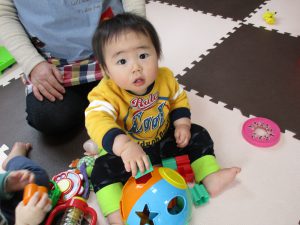 0歳児さんは色々な玩具で遊びました!!
