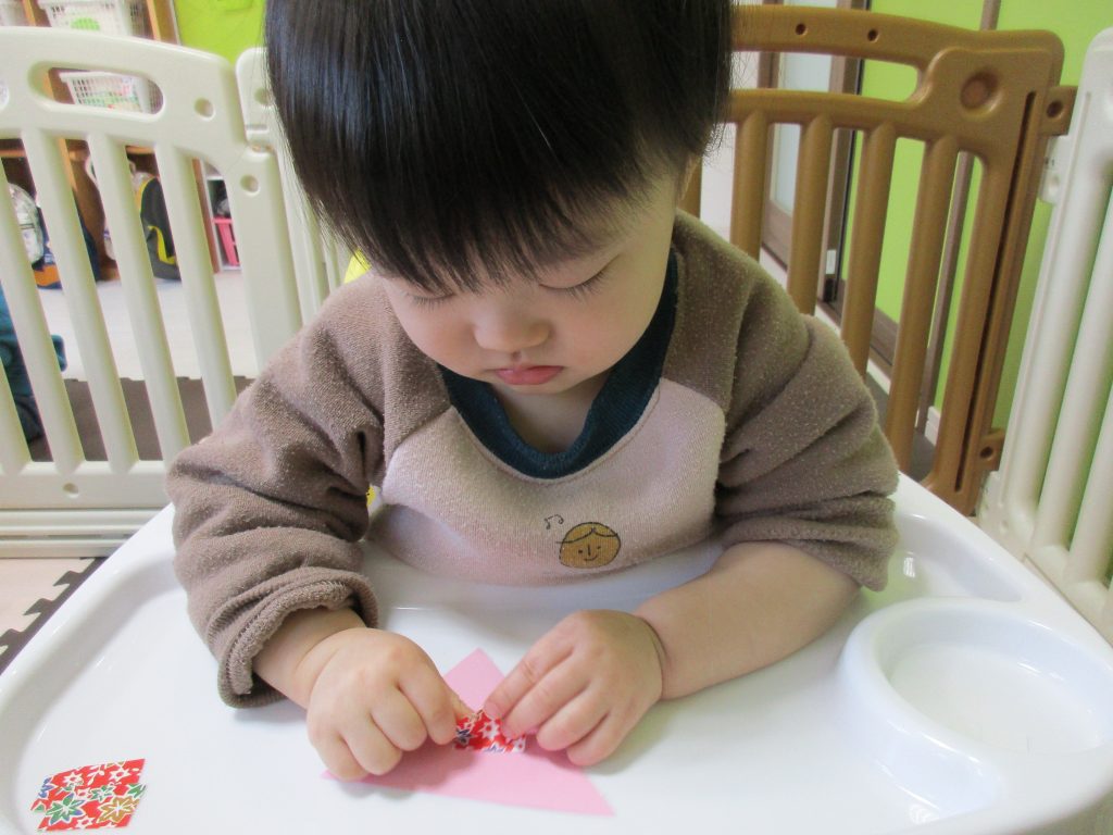 和柄の折り紙シールをペタペタ!