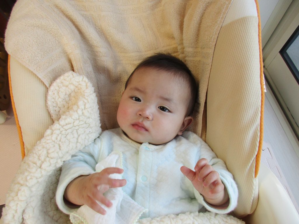 1番小さいお友だちは製作中にミルクを飲み、午前寝に入ったのでみんなが