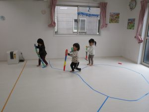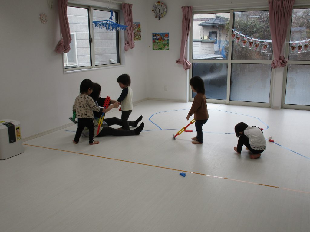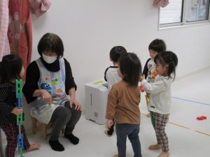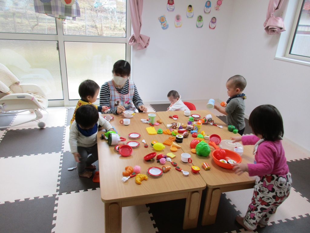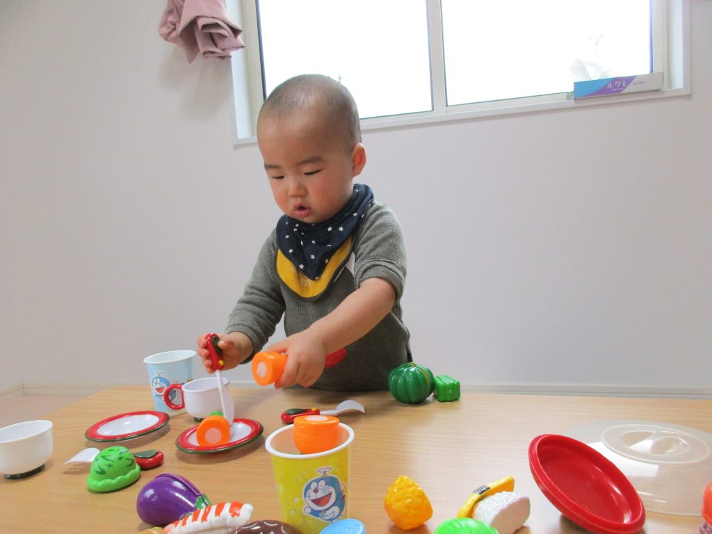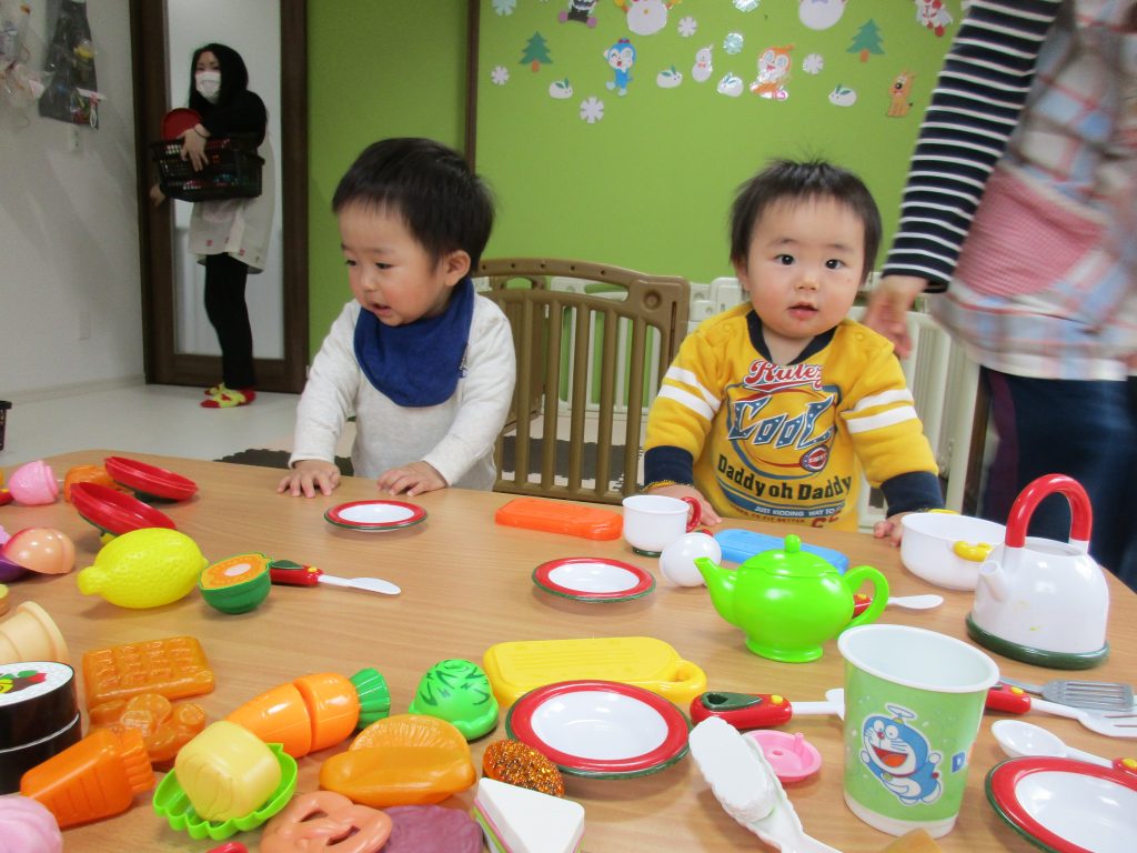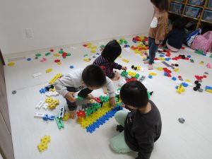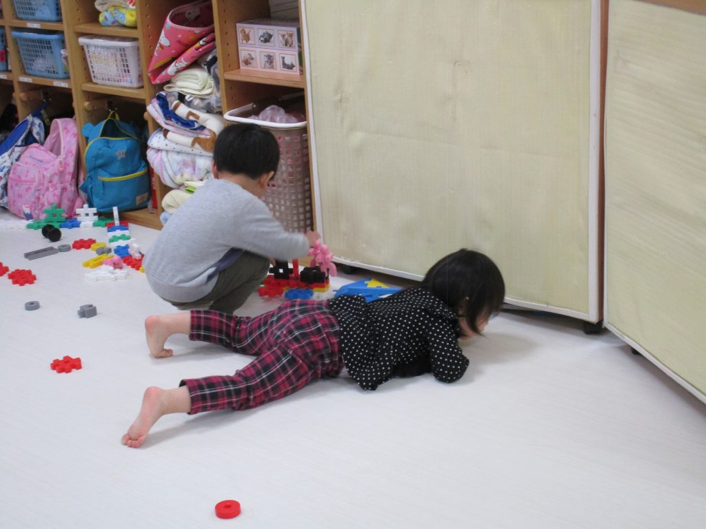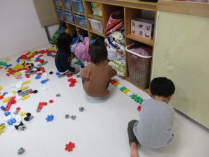 活動は0歳児さんはままごと遊び、1・2歳児さんはブロック遊びと