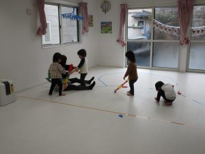 鬼になりきってブロックで金棒を作って、お友達や先生を怖がらせたり、