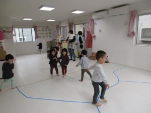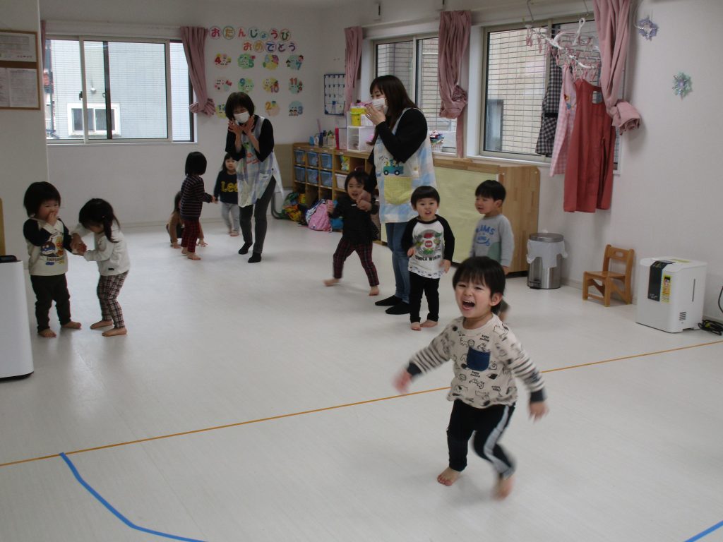 3月生まれのお友達のお祝いをしたり、先生からの出し物を見たり、