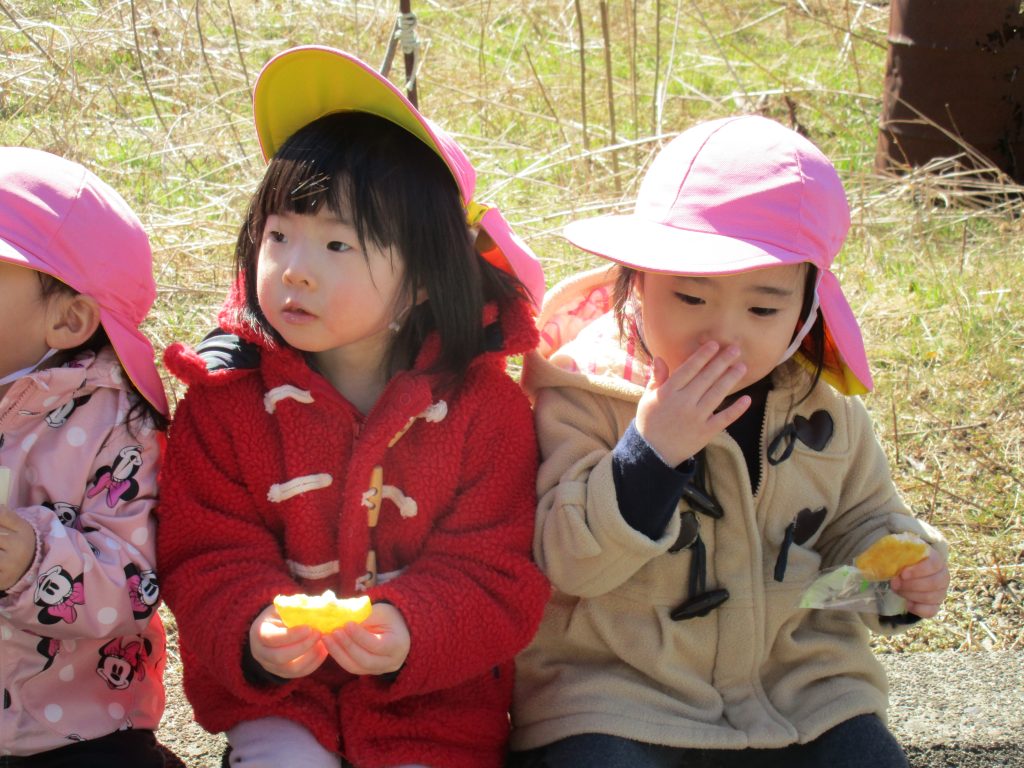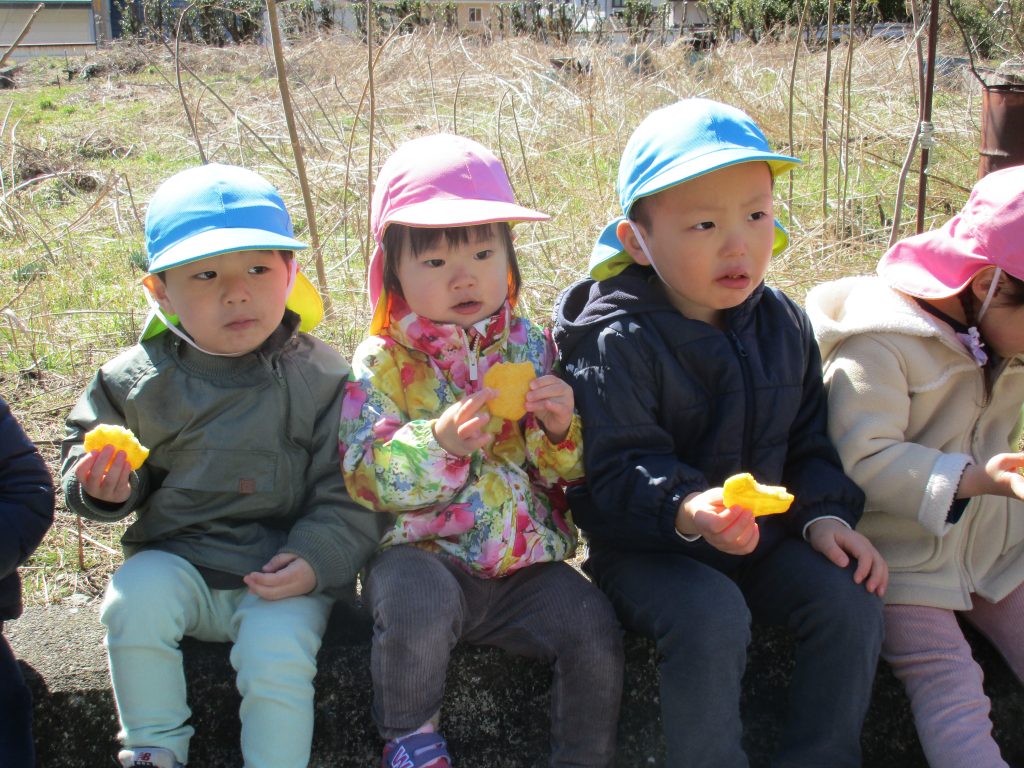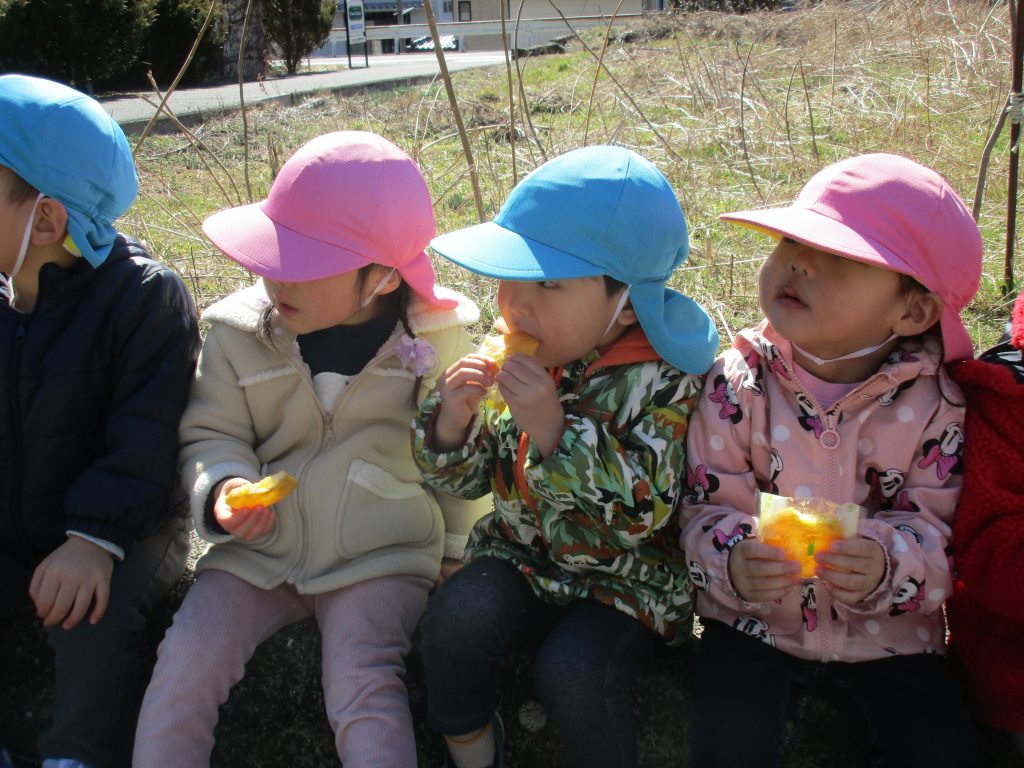 外で食べるおやつはいつもより美味しく感じてアッという間に完食です(^_^)