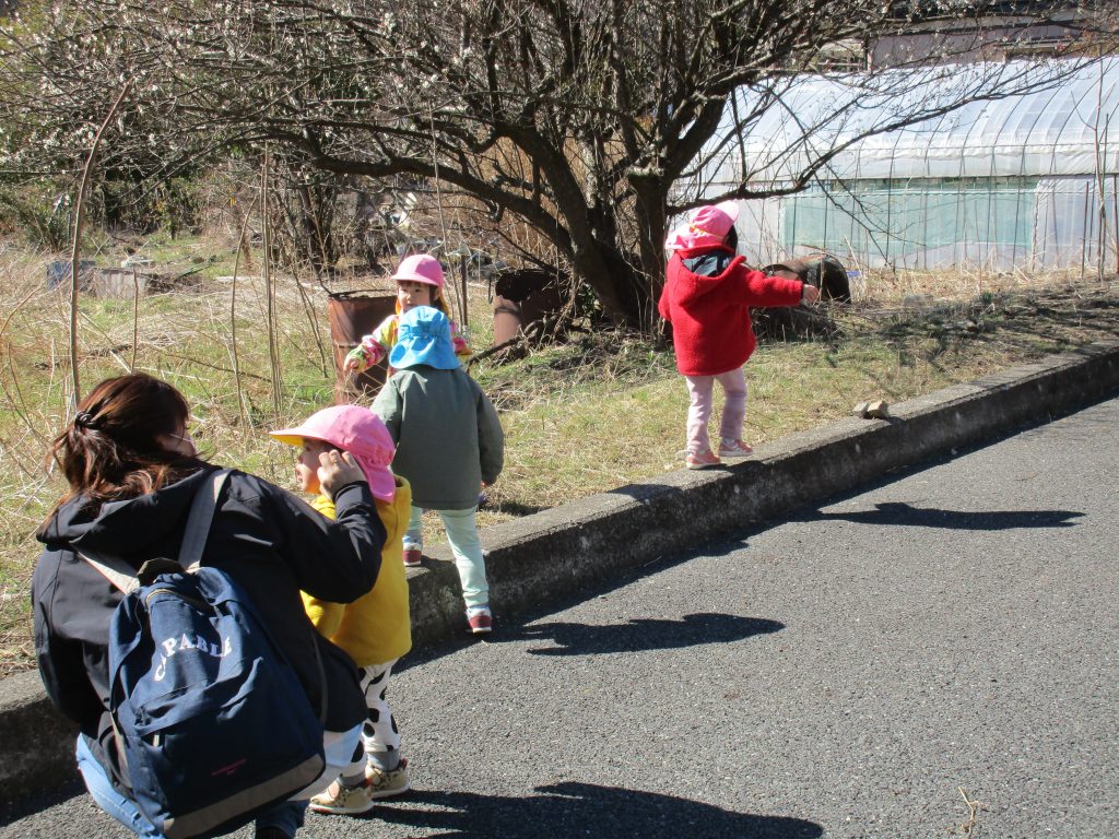 地面にはふきのとうが芽を出していたり、梅の花が咲いていたり、