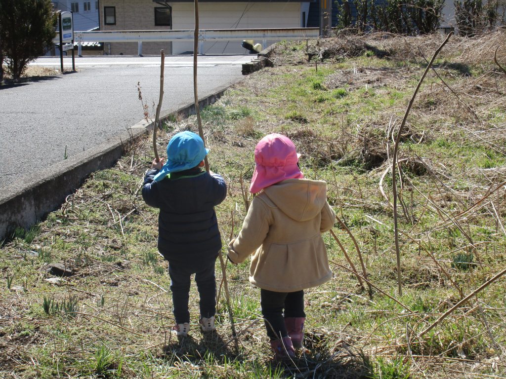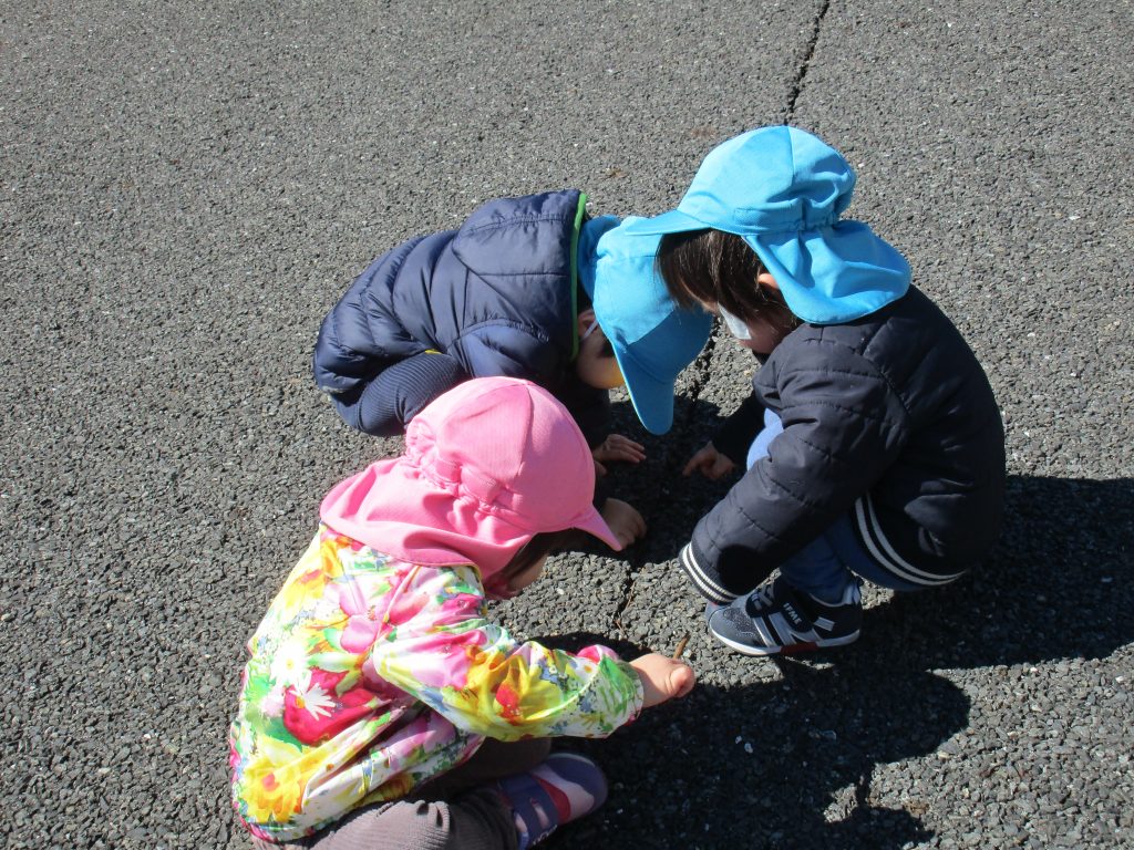 春を見付けては観察していた子ども達です!!