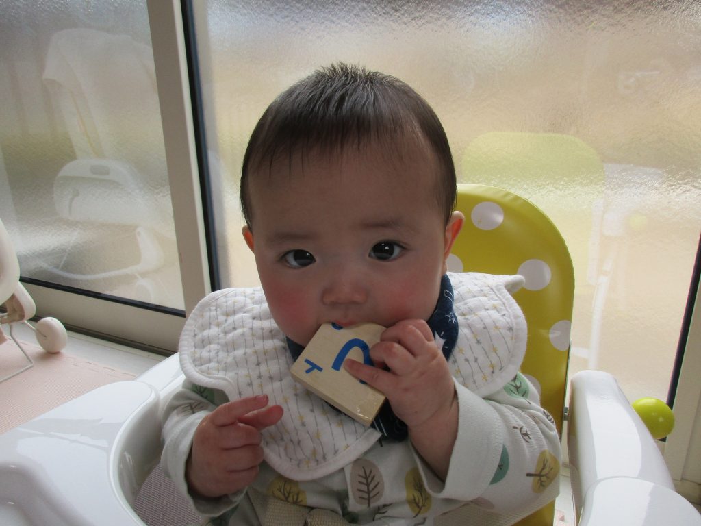 0歳児さんは積木で遊びました!!