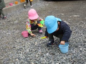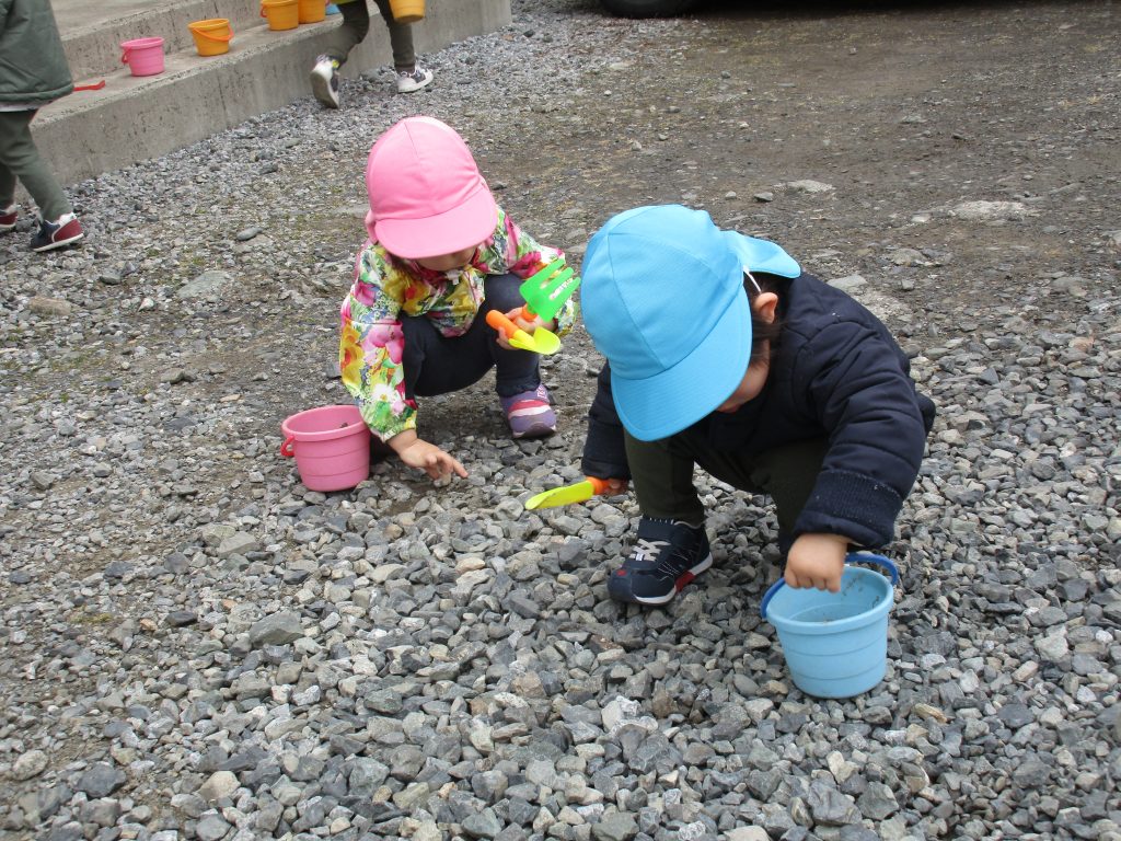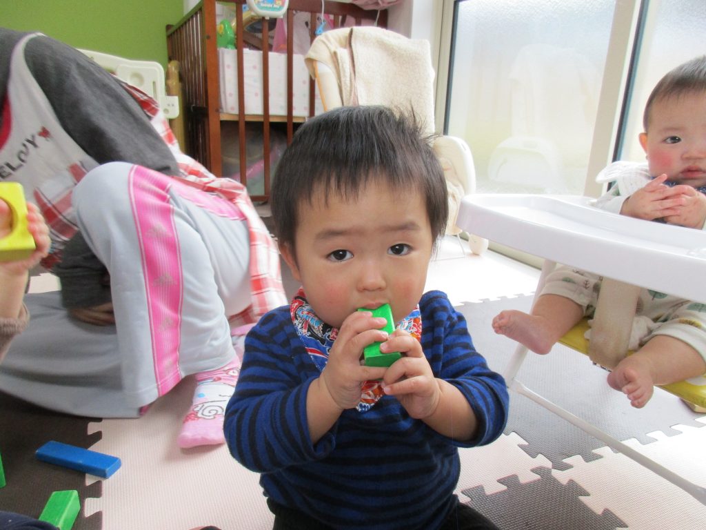 今日は0歳児さんは積木で遊び、1・2歳児さんは戸外遊びをしました!!