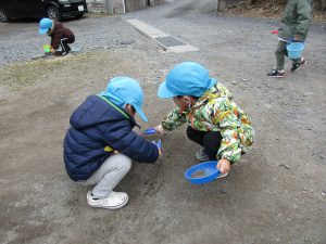 石をひっくり返してみたり、枯葉のところを探してみたり・・・