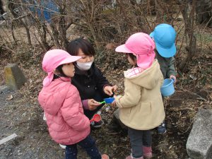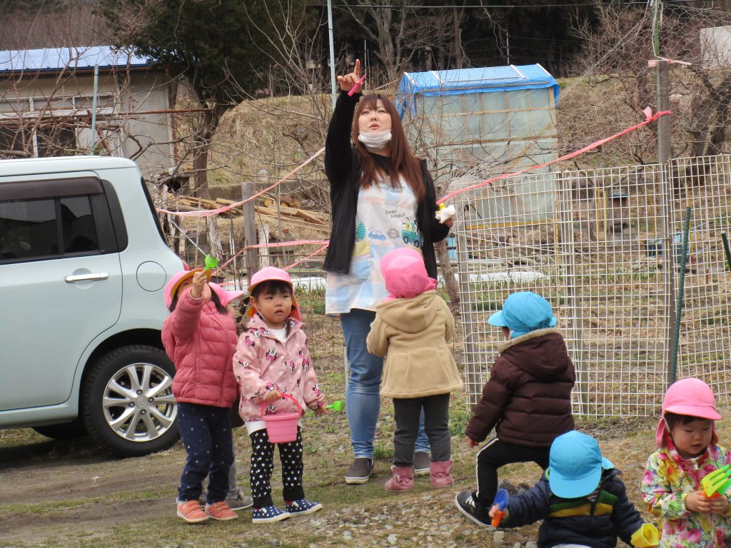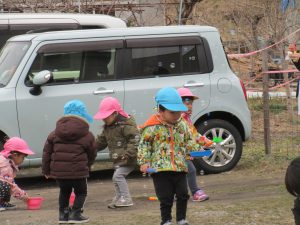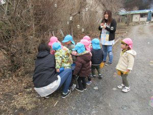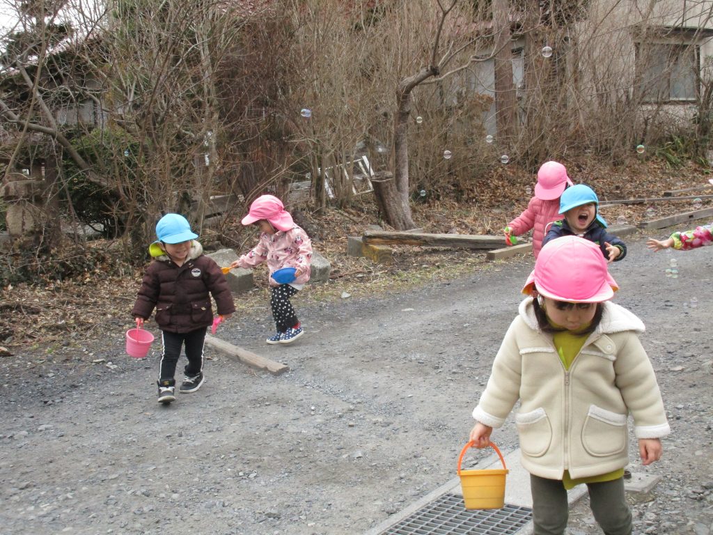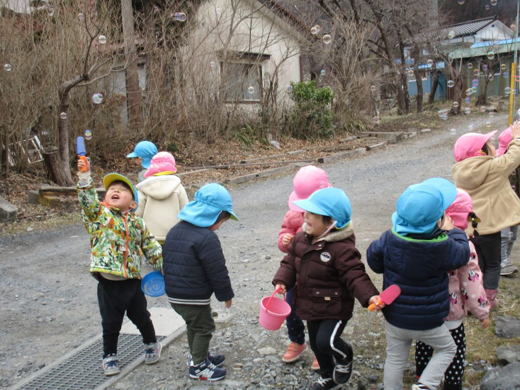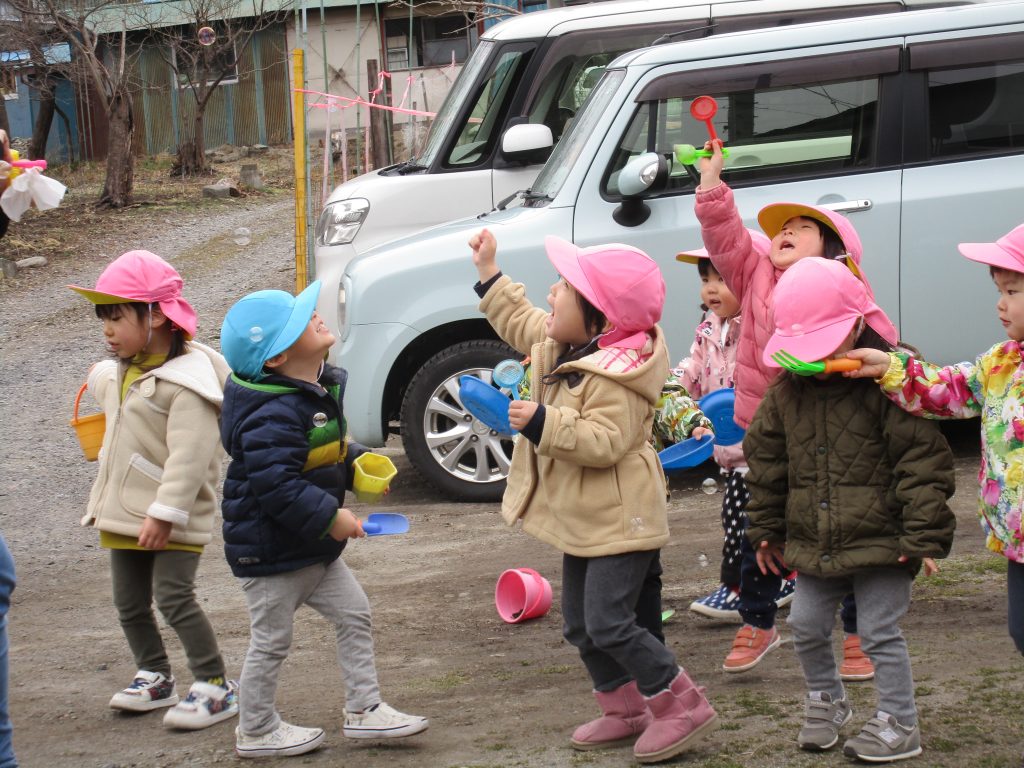 先生がシャボン玉を吹くと喜んで追い掛けたり、パチンと挟んで