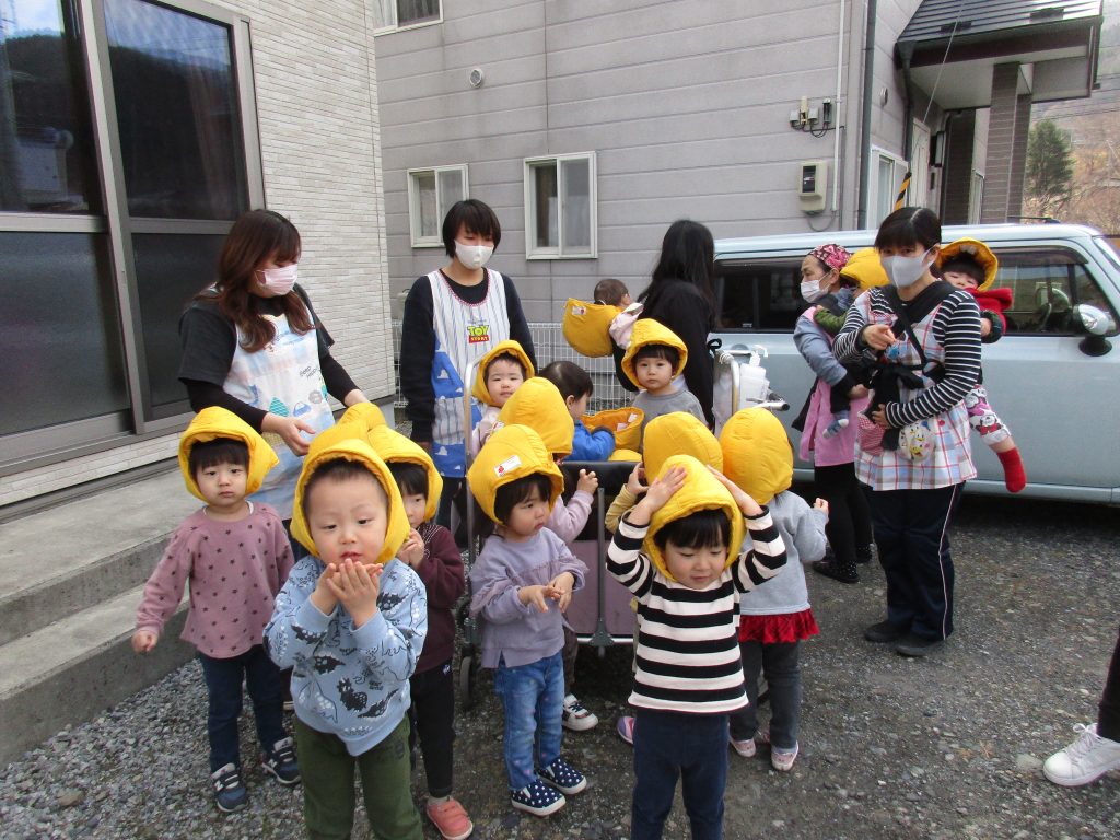 園庭に避難したので、避難訓練の後は0・1・2歳児さん共、