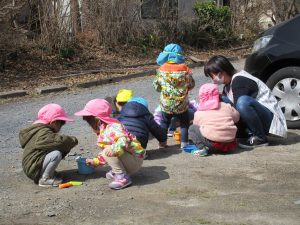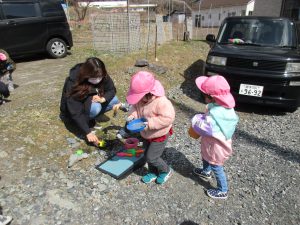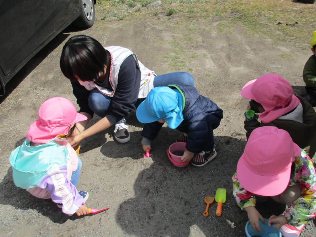 それでも「虫のエサ」と言ってたくさん石を集めていたお友達もいました(^_^)