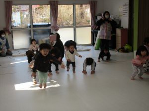 動物の模倣運動では、大きいお友達がお手本を見せてくれて