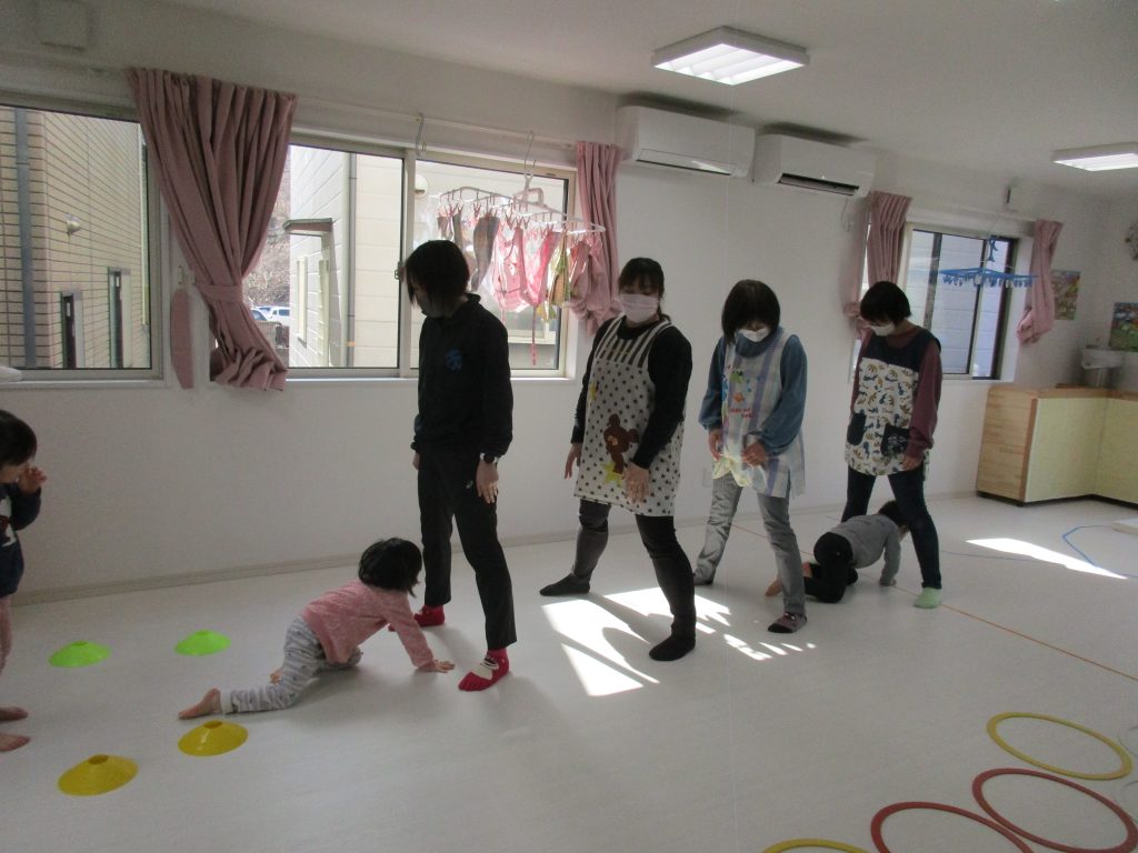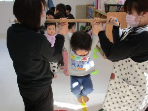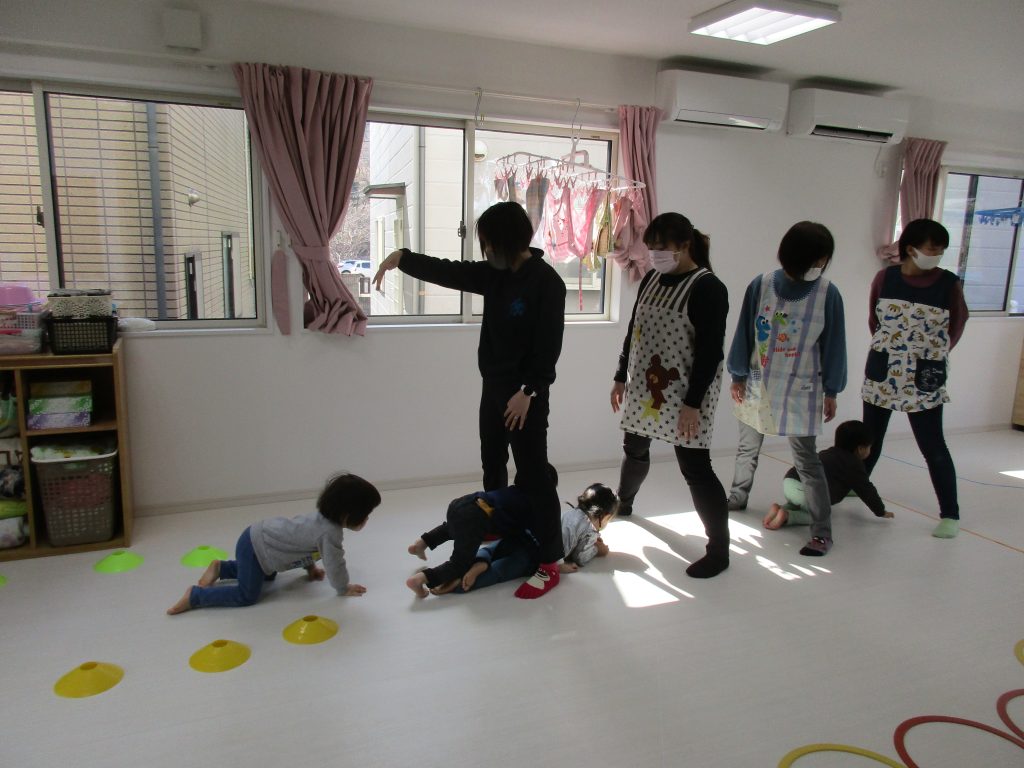 引き続き1・2歳児さんは、先生達の足のトンネルをくぐりました!!