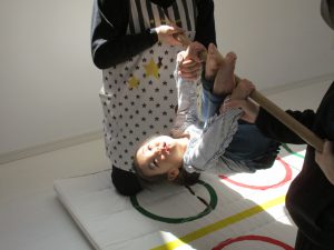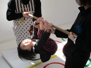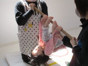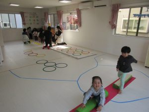 1歳児さんの月齢の高いお友達はでんぐり返しに挑戦しました!!