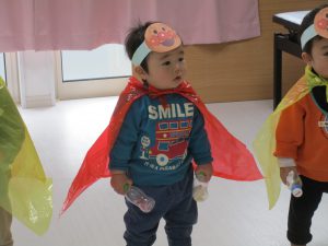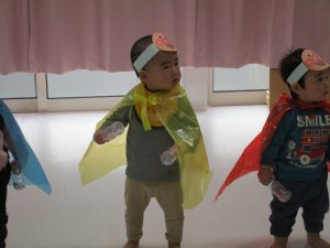始めは0歳児さん、アンパンマンの「サンサン体操」を踊りました(^_^)