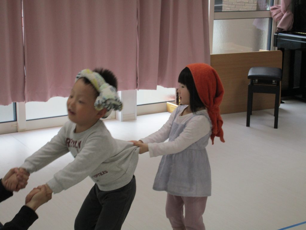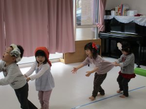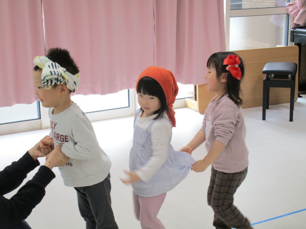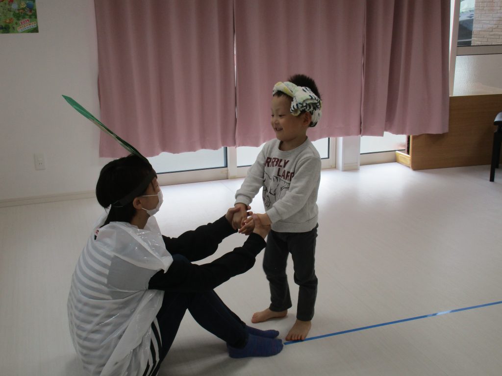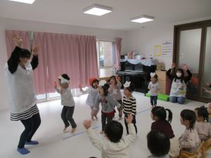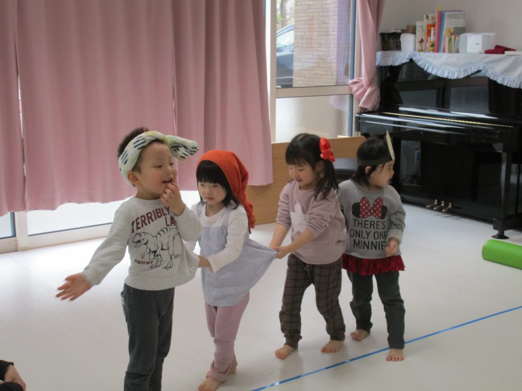 1・2歳児クラスの先生達は「3匹のこぶた」の劇をしました(^_^)