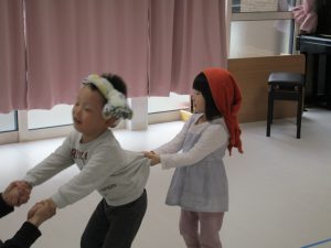 手作りマラカスを持って踊りましたが緊張したのかなかなか動けず・・・