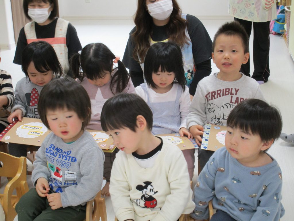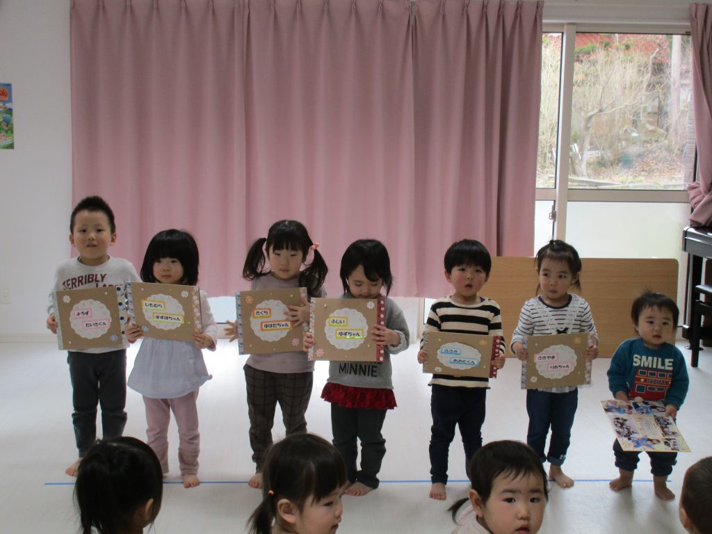 始めに今年度卒園する2歳児さんと、4月から新しい園に転園する