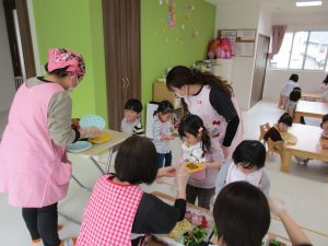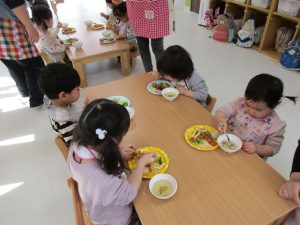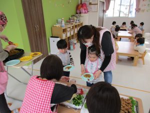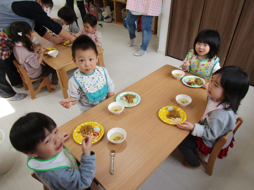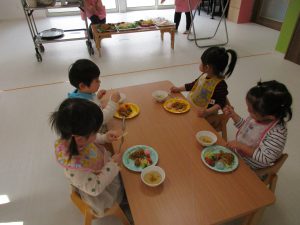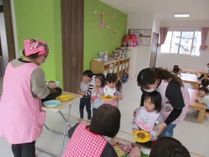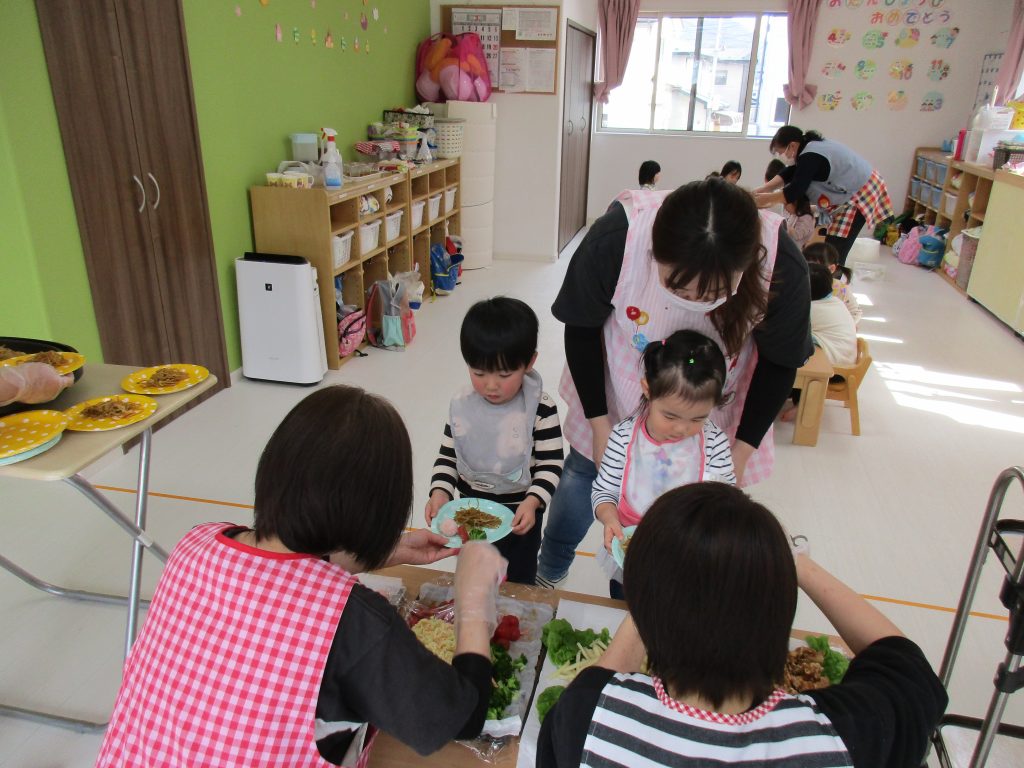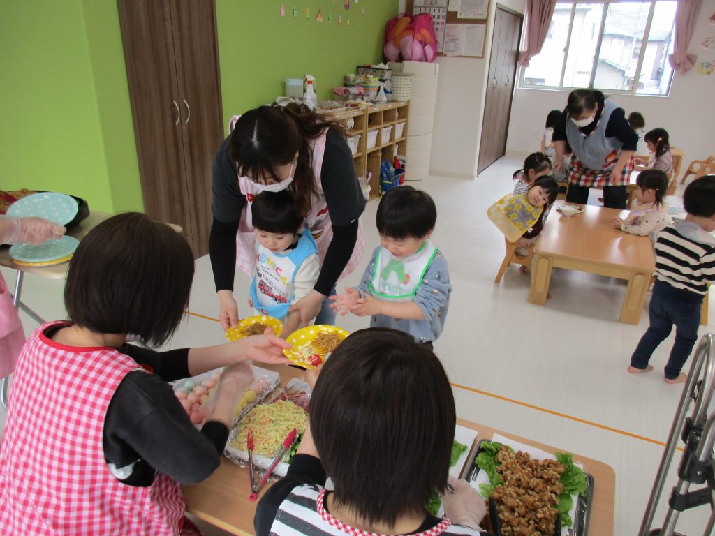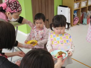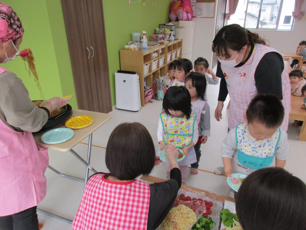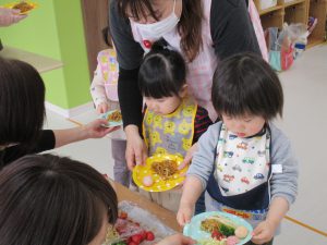 お別れ会の後は1・2歳児さんはお楽しみのバイキング給食でした!!