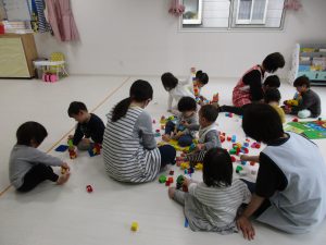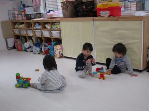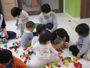 0歳児さんは知育玩具遊び、1・2歳児さんはレゴブロックで