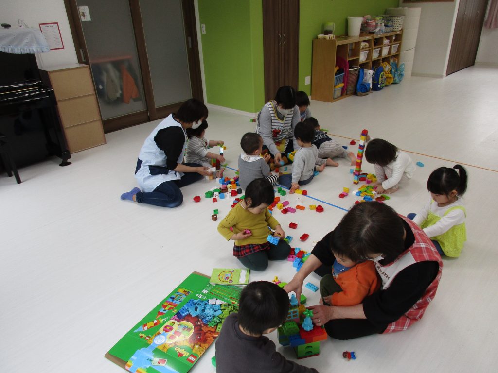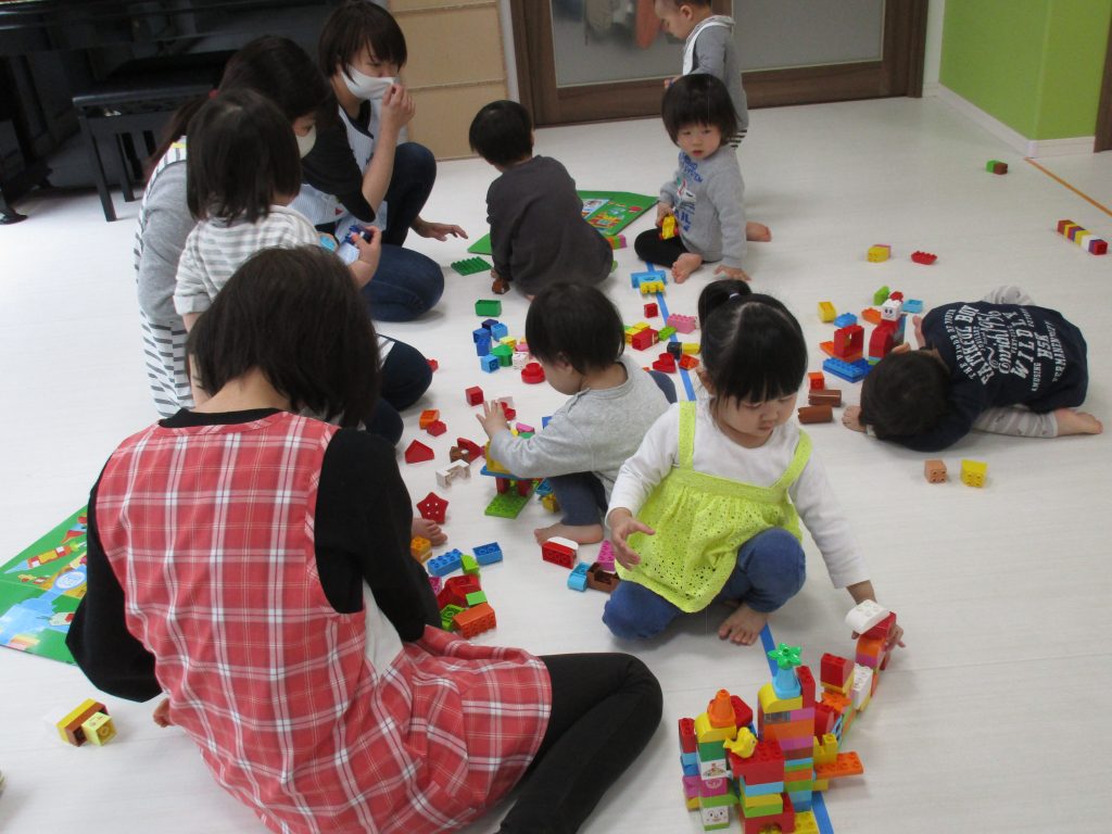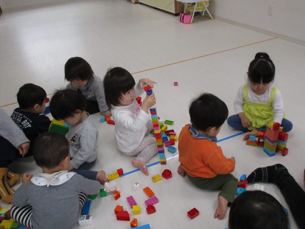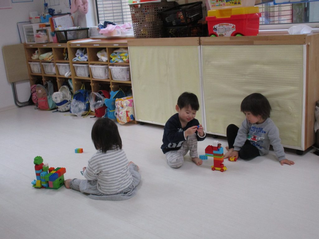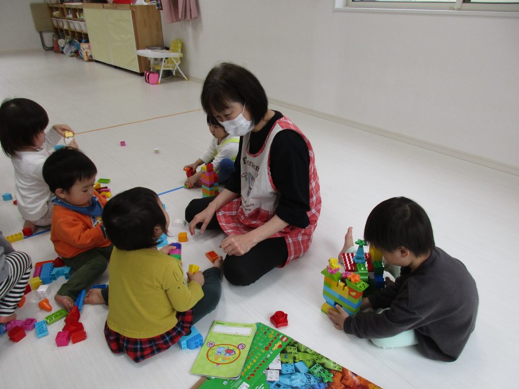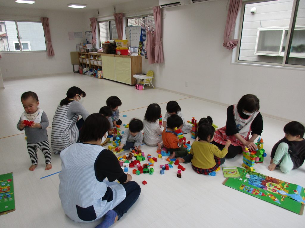 0歳児さんは知育玩具遊び、1・2歳児さんはレゴブロックで