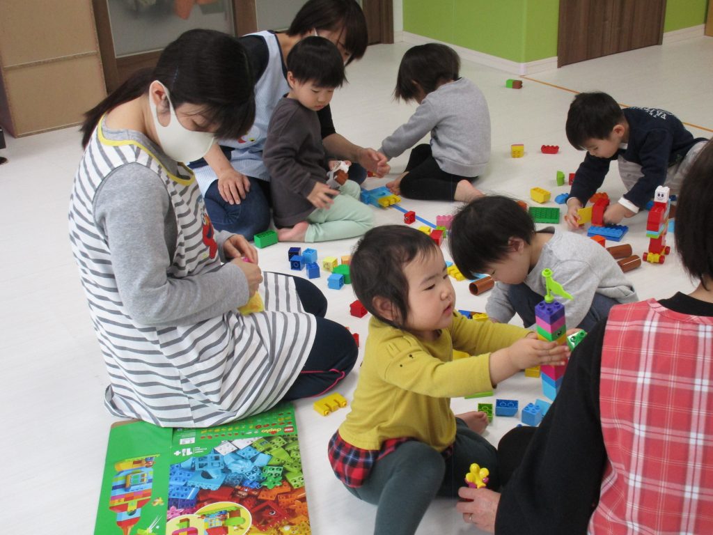 1・2歳児さんは新しく仲間入りしたレゴブロックで遊びました!!
