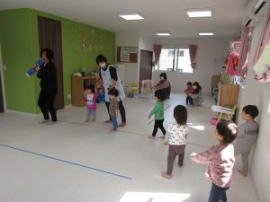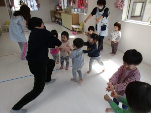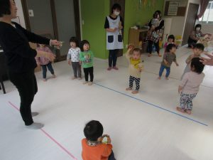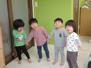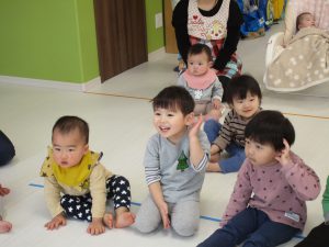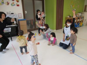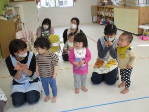 「しあわせなら手をたたこう」のお歌を歌いながら